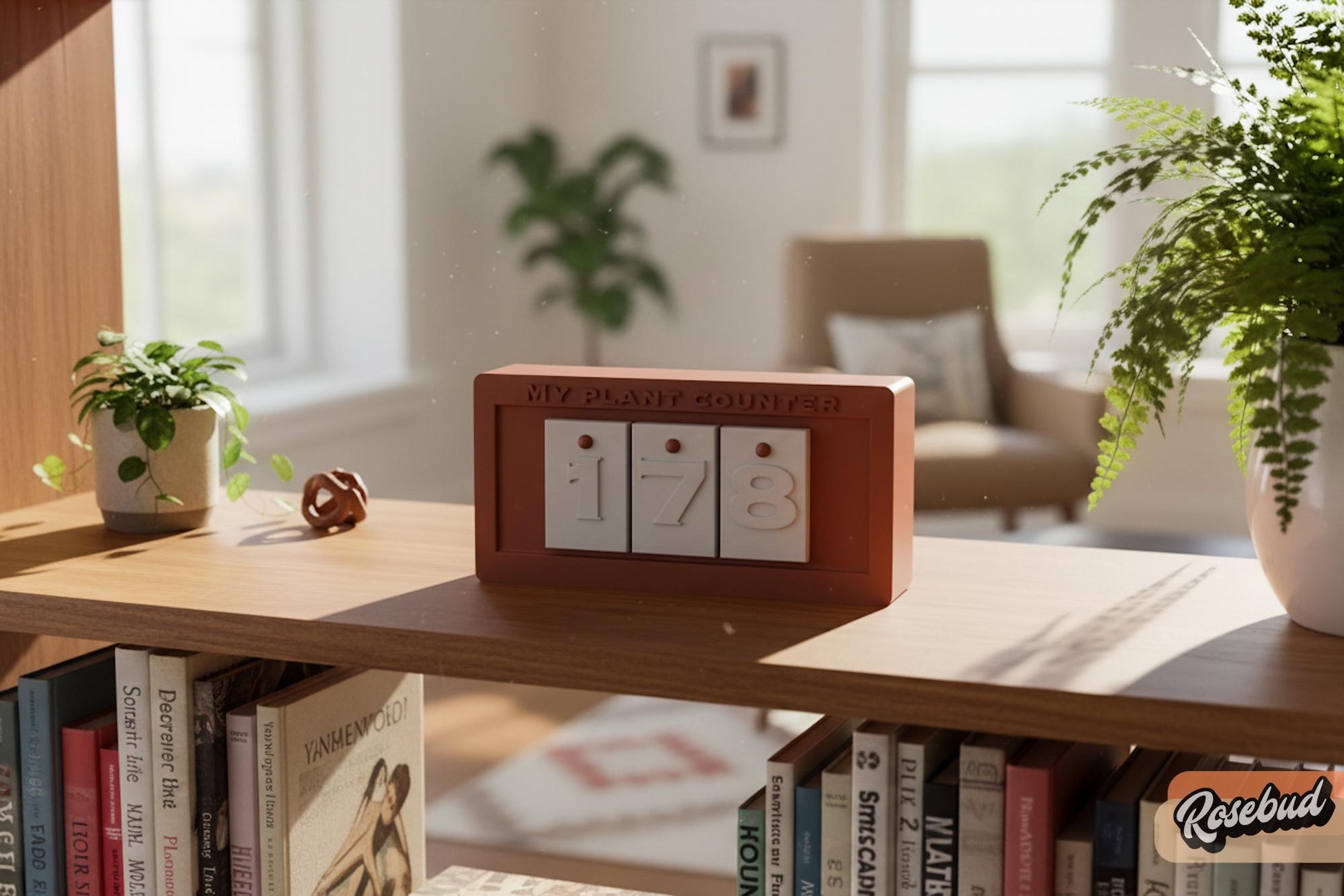 Each counter includes interchangeable number tiles that slide into place behind a crisp windowed frame. Switch the digits anytime you bring home a new green friend. It’s a modern, functional accent for your plant shelf, desk, or greenhouse wall.