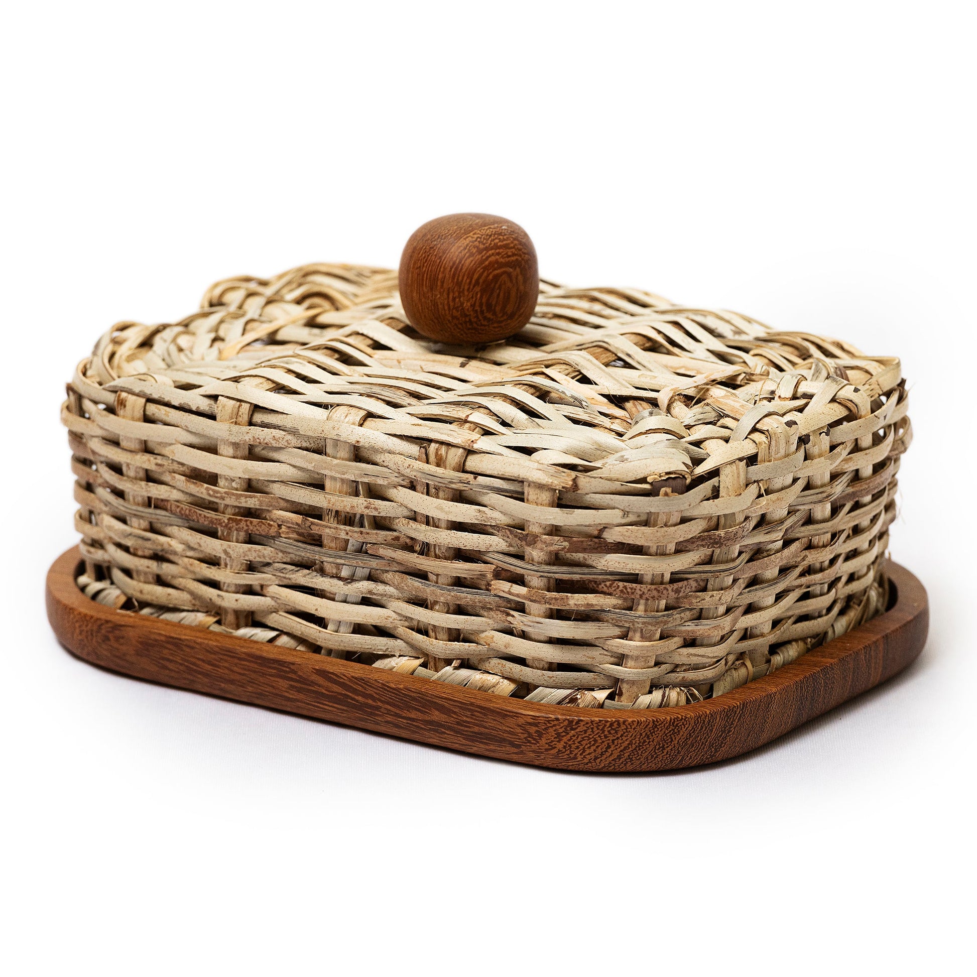 Seis Copitas is a handcrafted set of four shot glasses on a rich wooden base, topped with a handwoven palm lid. Each piece is shaped using traditional clay-pottery techniques, resulting in unique organic variations. Designed for slow sipping and intentional moments, it brings the warmth of Mexico's artisanal heritage to your table. Perfect for tequila or mezcal rituals, it invites gathering, celebration, and connection.