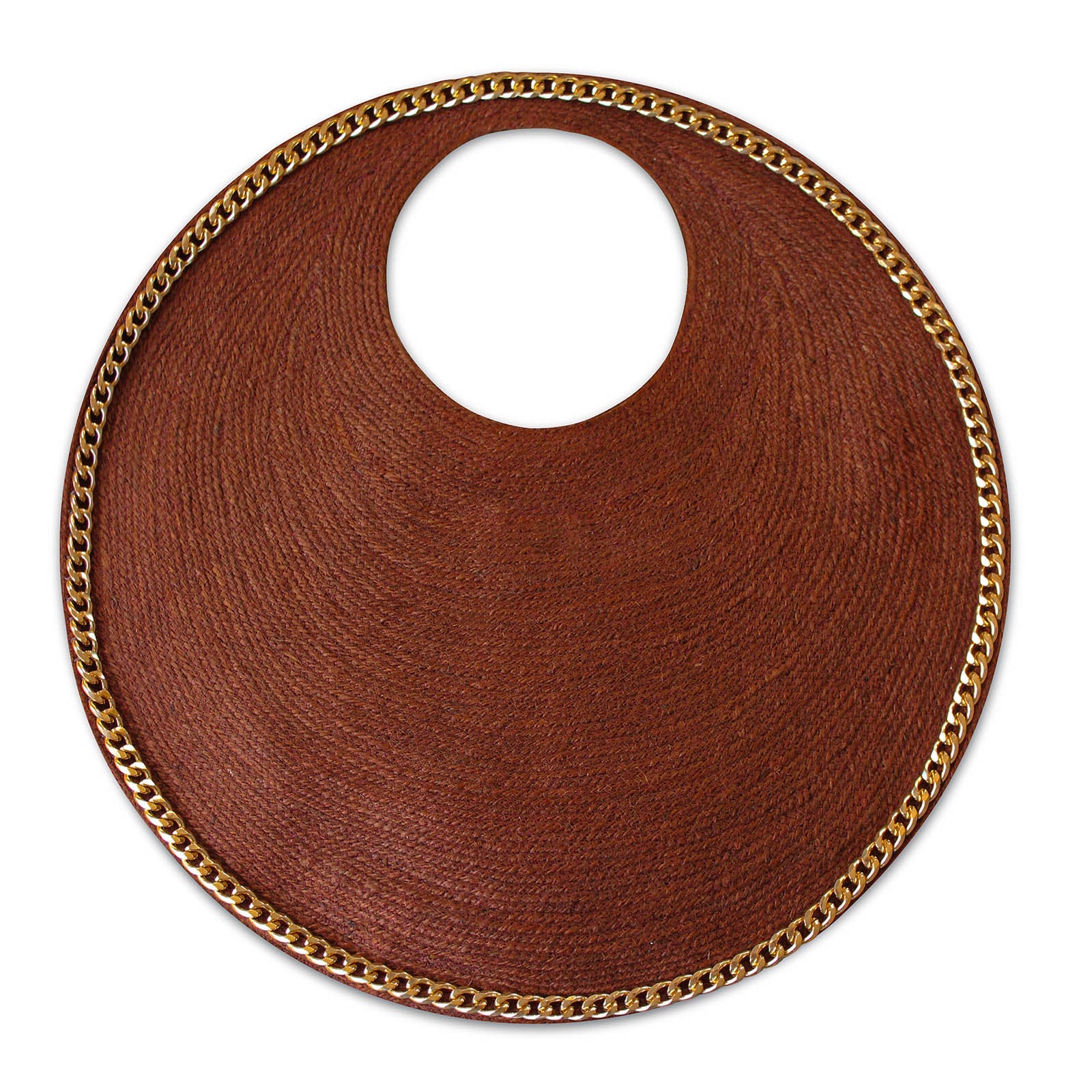 The Solo Espresso Jute Bag With Gold Chain